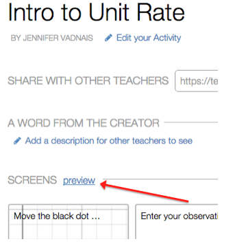 - Use the link: Intro to Unit Rate, press the preview button and go through the activity as a student